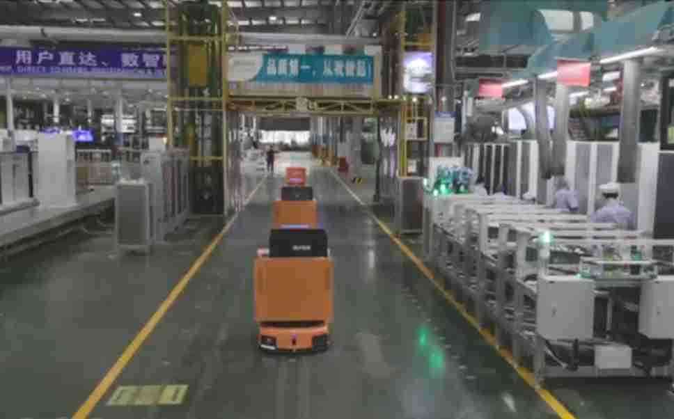 为车载冰箱物流配送打造的智能解决方案,,包含产中物流通过潜伏举升AMR搬运至线边,,,产后成品物流智能仓储,,,,流程包含产中物流智能齐套入库,,,线边安灯叫料AMR智能配送至线边,,,成品入库、、出库,,,通过无人堆高车机器人,,,,智能仓储管理替代人工作业管理,,,,实现更高存储、、更高效率、、、、更具柔性化的解决方案。。。